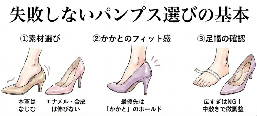 素材ごとの特性を理解することが、「痛くないパンプス選び」の第一歩です。