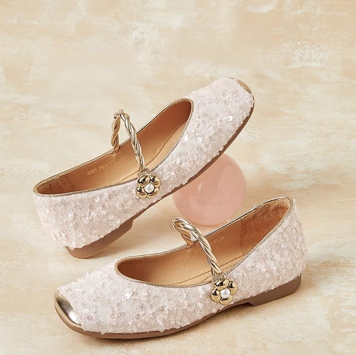 結婚式用ヒールなしゴールドパール装飾パンプス