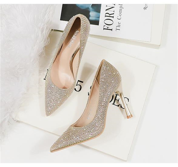 上品な輝きを放つラメデザインのポインテッドトゥパンプス。