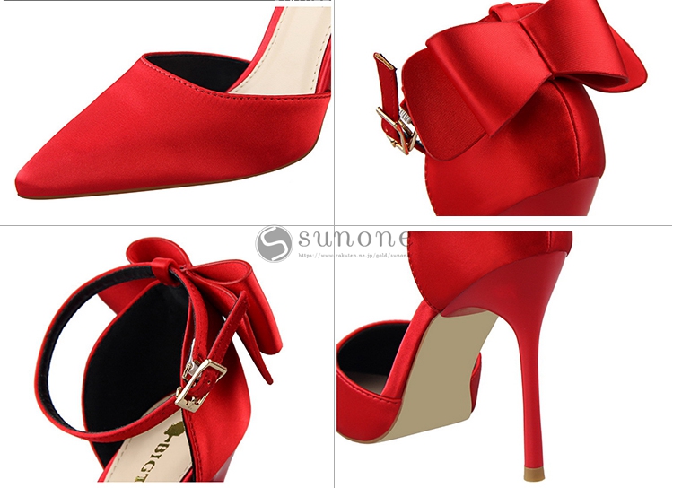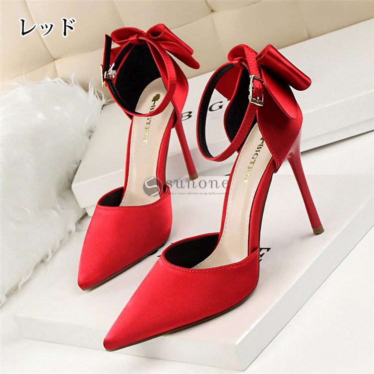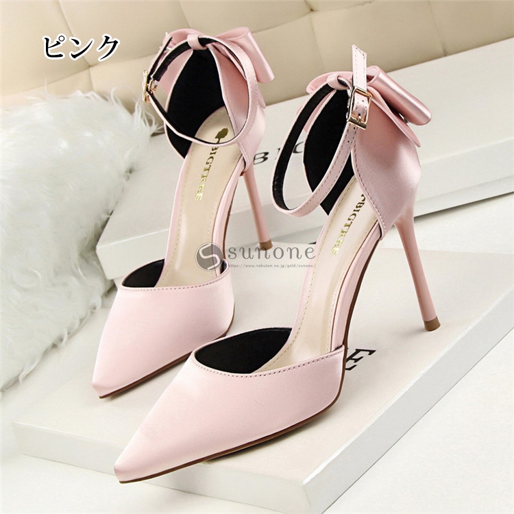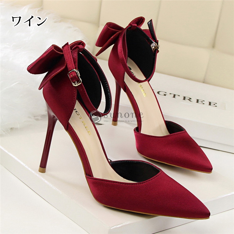 かかとの上品なリボンがパーティーシーンを華やかに演出します。